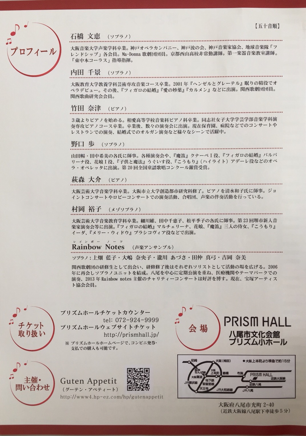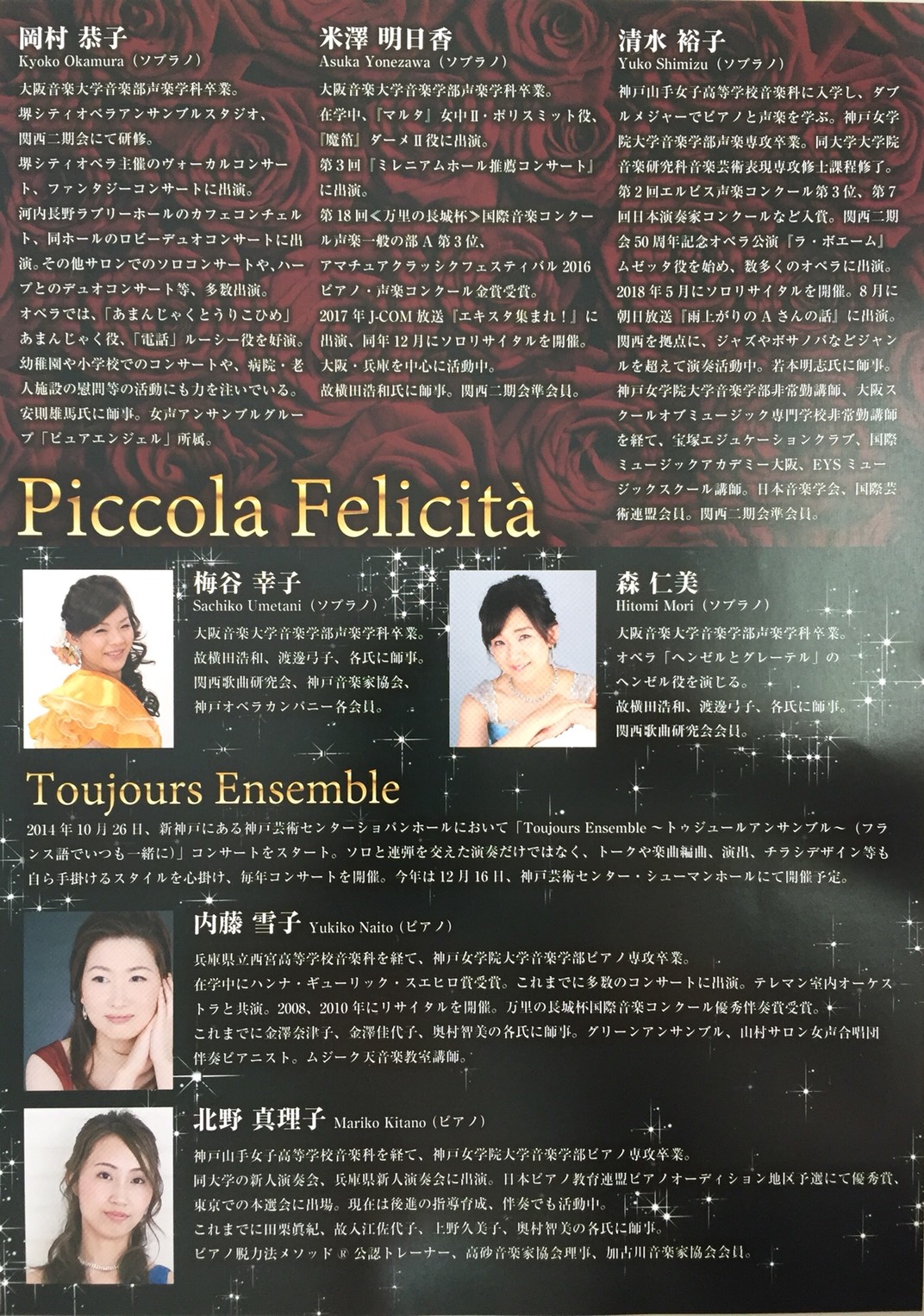さて、こちらは、宝塚エジュケーションクラブピアノ講師竹田奈津先生出演のコンサートと、ヴォーカル講師清水裕子先生出演のコンサートです。