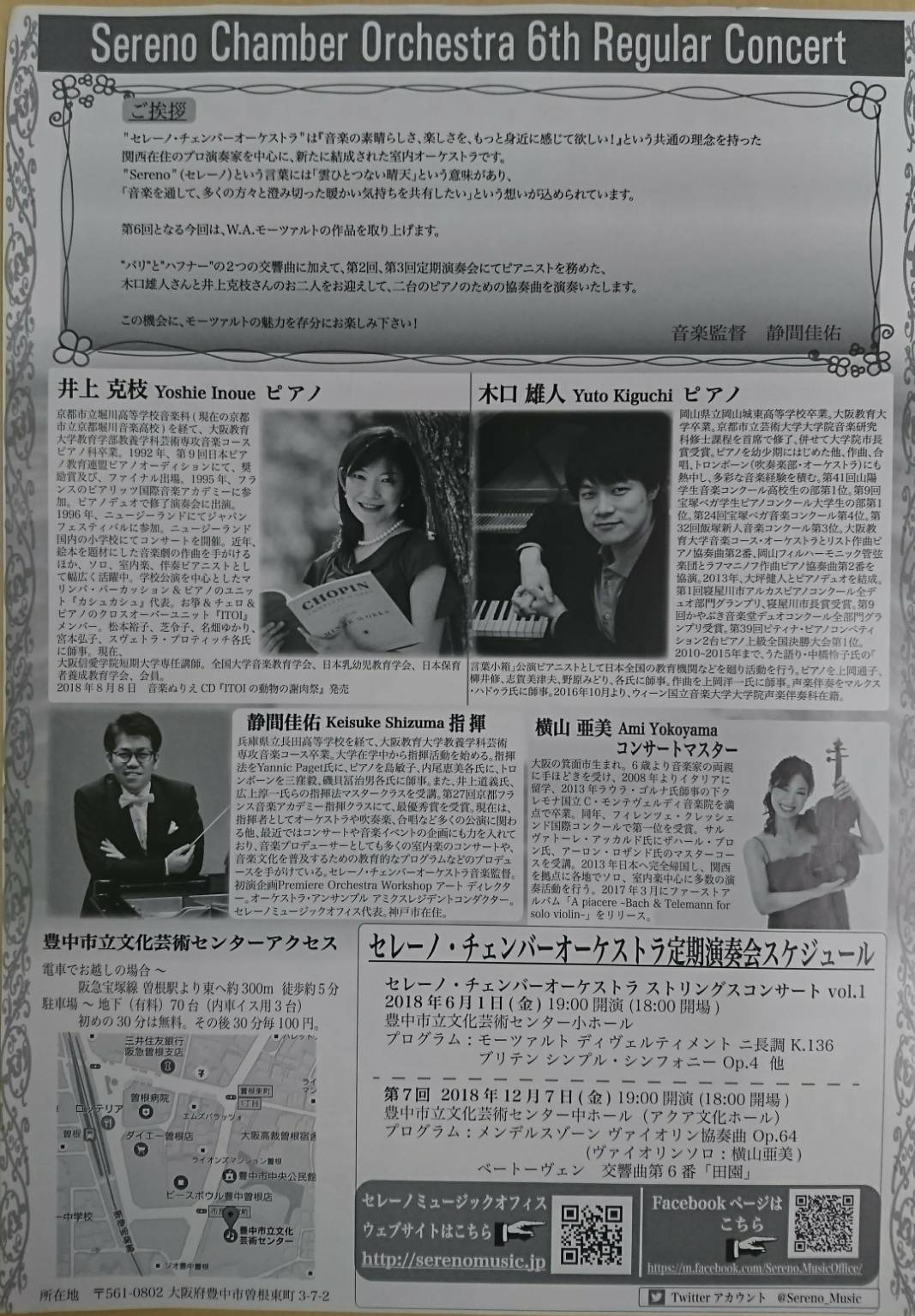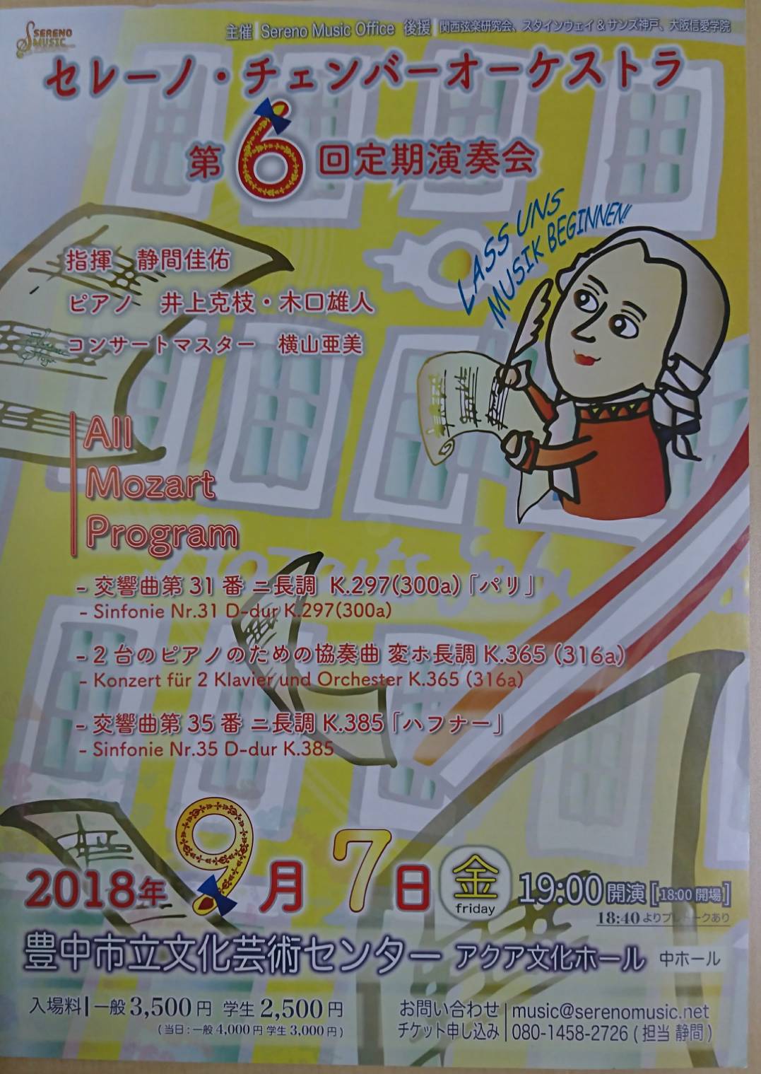 ◆9月7日㈮19:00開演 セレーノ・チェンバーオーケストラ第6回定期演奏会@豊中市立文化芸術センター/アクア文化ホール(中ホール)